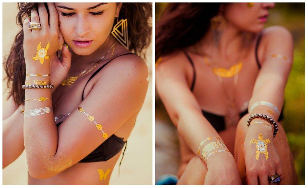 Как известно, детали в образе имеют большое значение. Аксессуары – это важная часть стиля в целом. Выбирая аксессуары вдумчиво, Вы, определенно, находитесь на правильном пути. Одним из наиболее эффектных аксессуаров для летних луков являются металлические флэш тату.