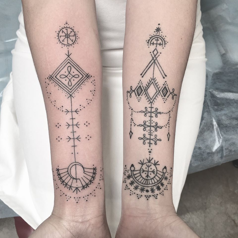- Выбирайте тату исходя из ее назначения: амулеты и обереги служат защитой и привлекают удачу; если есть слабые стороны, выбирайте рисунки, усиливающие прямо противоположные качества.