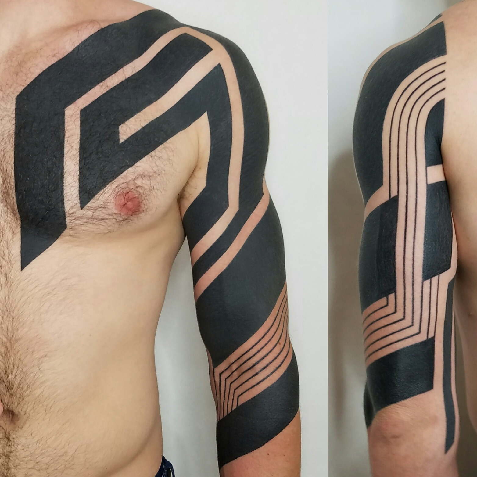 Татуировки, состоящие из различных геометрических фигур, относятся к технике геометрия.