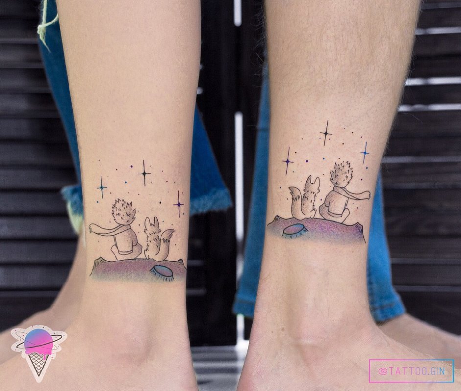 Часто рисунки для двоих довольно стереотипны. Но некоторые идут более сложным путем: изображают какие-то личные вещи, понятные и имеющие смысл только для этих двух людей. Такие парные мини тату получаются гораздо интереснее.