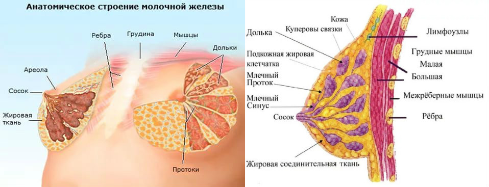 Женская грудь состоит из молочных желез – которые являются основными элементами, формирующими грудь при достижении половой зрелости.