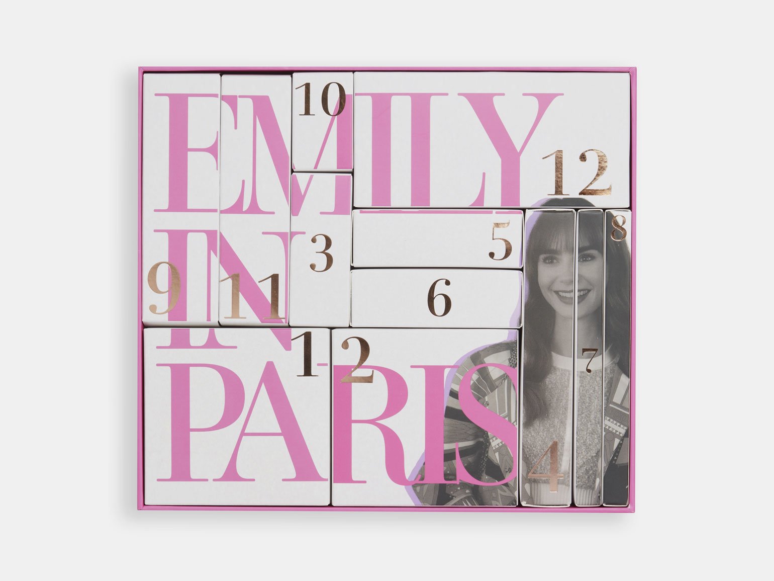 Раздобыть прекрасный адвент-календарь можно не только за границей. Например, можно приобрести тематическую коробку с сюрпризами от косметической марки Makeup Revolution, посвящённую сериалу «Эмили в Париже». В адвенте за 9 тысяч рублей есть всё для макияжа — от спонжа и тональной основы до туши и помады.