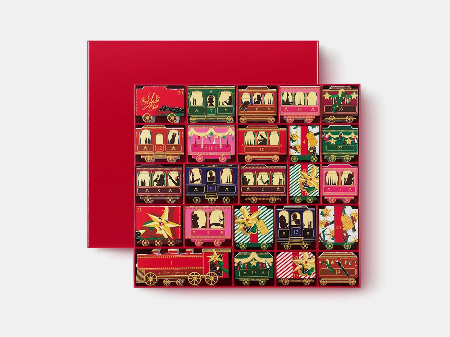 В этом адвент-календаре собраны миниатюры ароматов бренда (очень много запахов праздничных специй и имбирных пряников), миниатюры для тела, две ароматические свечи, полноразмерный аромат. Цена — 350 фунтов стерлингов, что по нынешнему курсу составляет чуть больше 40 тысяч рублей.