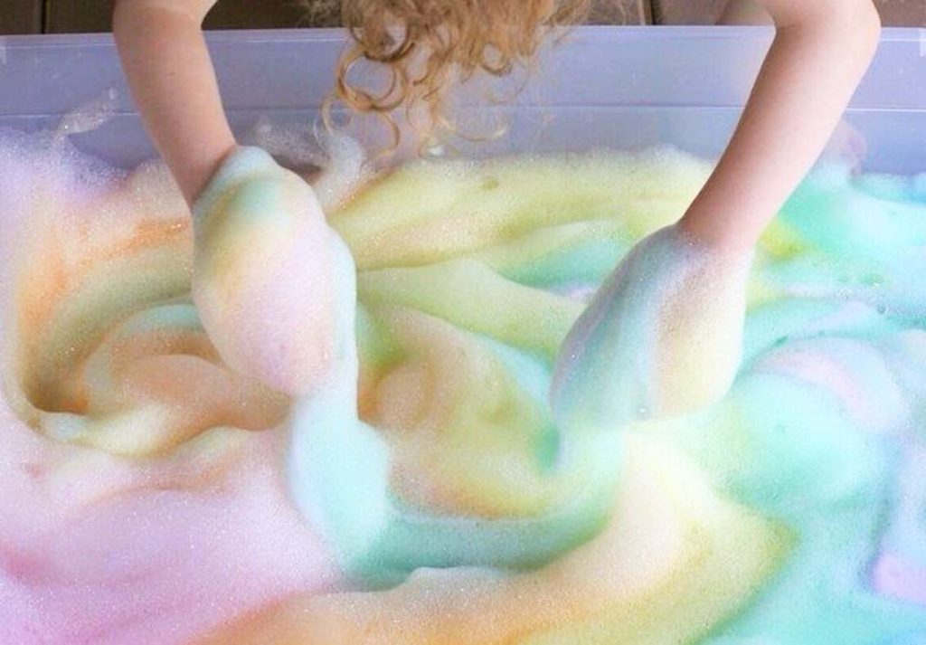 С пеной детское купание станет еще более увлекательным! Из нее стоят замки, сдувают ее друг на друга, играют в фабрику мороженого, топят вражеские корабли, делают пенные шапки — и еще много разных игр можно придумать с волшебными пузырьками!