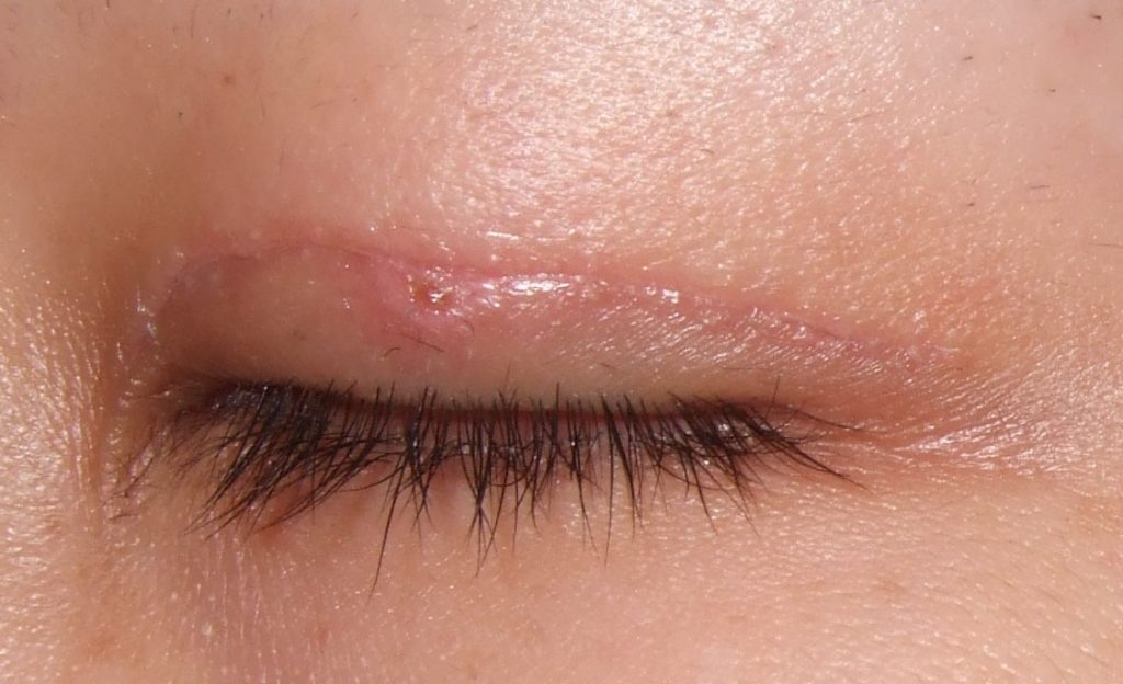 - на веках, где есть швы, соединительная ткань разрастается, становится более плотной и занимает большую площадь, чем изначальное повреждение;