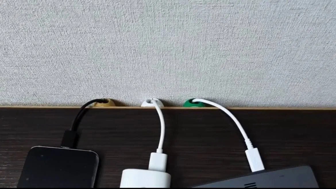 Настоящей находкой для меня стали самоклеящиеся держатели для кабеля. С их помощью я закрепляю провода от зарядных устройств, которых, я думаю, много в каждой квартире. Причём, я устанавливаю их за тумбочкой, так что интерьер не страдает, на тумбочке нет ничего лишнего.
