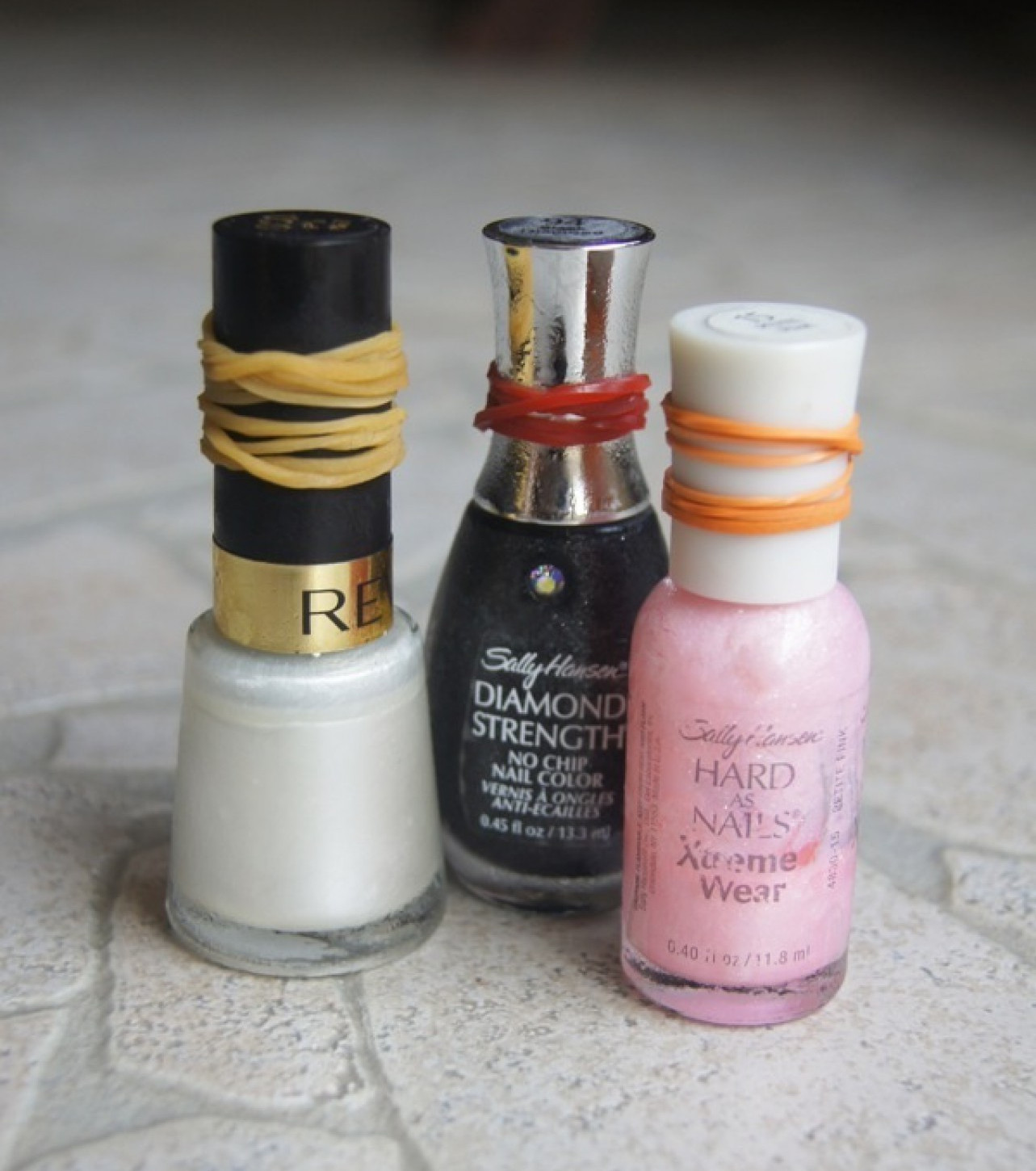 Если нужно открыть бутылочку с лаком для ногтей, но лак немного присох, то намотайте резинку на крышечку и попробуйте открыть еще раз, обязательно все получится.