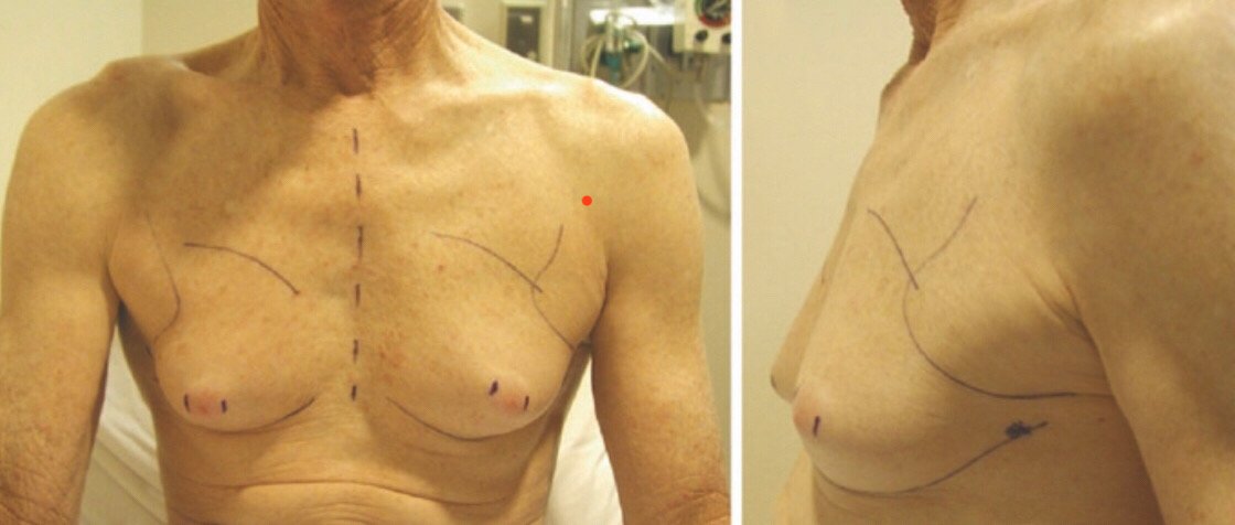 Очень сложно внешне оценить количество избыточной ткани при гинекомастии. План хирургического вмешательства основан не только на удалении молочной железы, но и лишней кожи.