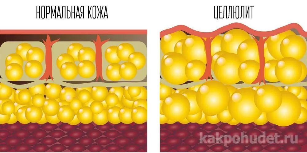 Основной причиной возникновения целлюлита является гипертрофия жировых клеток (адипоцитов). Она влечет за собой нарушения микроциркуляции тканевой жидкости и уплотнение соединительнотканных волокон. Одним из гендерных отличий женского организма является способность адипоцитов накапливать энергию (в виде капелек жира). При усиленном питании жировые клетки начинают разбухать, создавая препятствие для нормальной циркуляции лимфы. Как следствие, развиваются застойные явления, происходит изменение структуры коллагена и кожа начинает приобретать вид пресловутой «апельсиновой корки». В особо запущенных случаях отвердевшие фиброзные ткани могут сдавливать нервные окончания, приводя к ощутимым болевым ощущениям. Однако подобная проблема относится к исключению из правил и встречается достаточно редко.