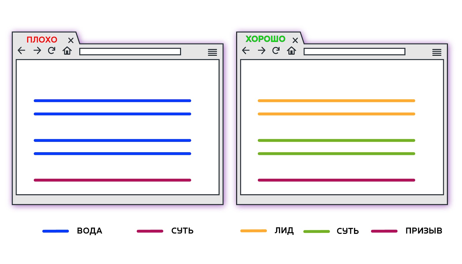 Это отчасти относится и к пункту выше, но встречается и отдельно стоящей проблемой. Выражается это в том, когда условно два абзаца из трех тратится на подводку к ключевой информации. Речь не про структурированный пост, который начинается с раскрытия предложения, в середине закрывает возражения, а в конце призывает к действию. Мы говорим о публикациях, где основная часть текста посвящена множеству встречных вопросов, погружению читателя в условную ситуацию или давлению на боли, а заканчивается все сумбурной подачей информации и призывом / вопросом.