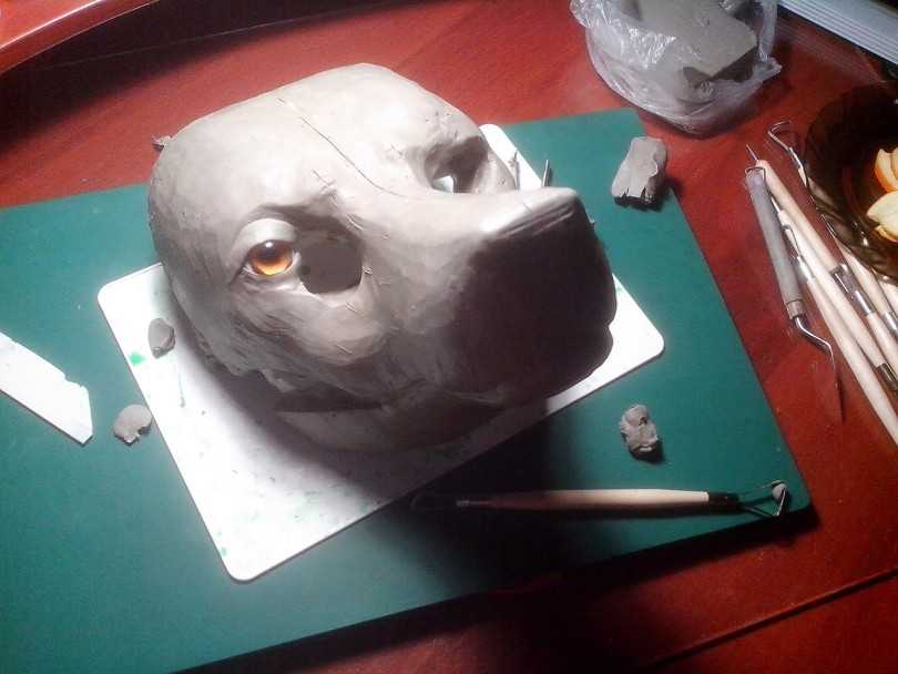 - Чтобы поделка стала действительно объемной, нужно сделать пару надрезов: в области висков, надбровных дуг, в нижней части носа.