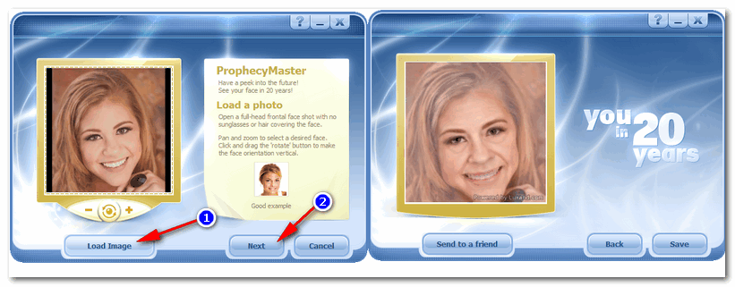 — простая в использовании программа, которая в игривой форме покажет, как будет выглядеть ваше лицо, спустя несколько десятилетий. Полученными фотографиями можно обмениваться с друзьями и родственниками с помощью электронной почты, Facebook, Twitter. Пример одной обработанной фото вы можете увидеть на скриншоте ниже (слева- оригинальное фото, справа — спустя 30 лет)