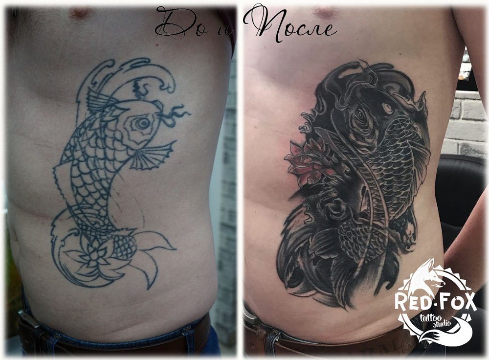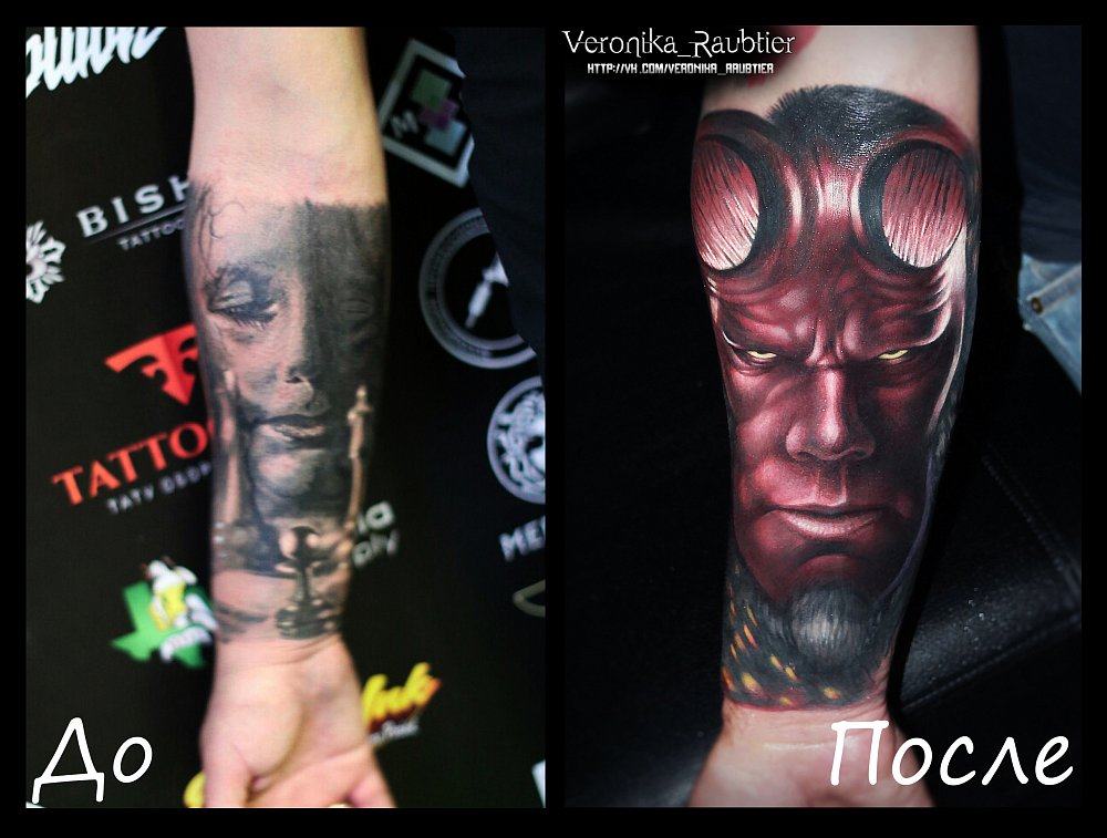 Если же рисунок просто утратил свою актуальность, но в целом человек не против татуировки, ее можно закамуфлировать. Опытный мастер без труда добавит новые линии и цвета, придавая узору совсем другие очертания. Наиболее часто камуфлируют старые черные или синие татуировки — при помощи цветных чернил. Однако при этом очень важна квалификация мастера, иначе результат камуфляжа может оказаться гораздо хуже первоначального варианта.