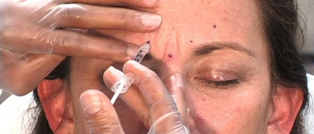 4. Инъекции. Далее собственно вводятся определенные заранее дозы препарата в помеченные на втором этапе точки. Пациенту нужно помочь врачу на этом этапе, хмурясь или иным способом напрягая мимические мышцы.