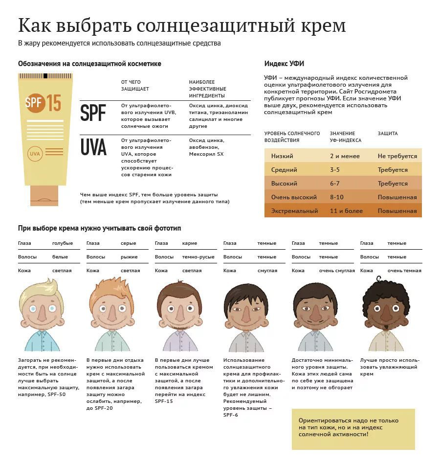 Покупать SPF-продукт рекомендуют, отталкиваясь от своего фототипа. Насчитывают их пять: