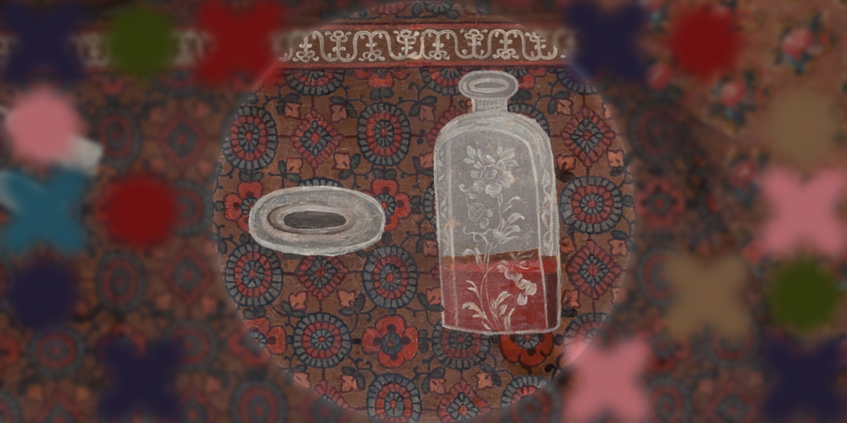 Графин и стакан в руках красавицы можно объяснить по-разному. Во-первых, алкоголь выступает как аналогия внутри поэтического ряда «женщина — опьянение — любовь». Подобное сравнение не было уникальным для культуры каджарского Ирана: оно пришло из сефевидского Ирана в XVI–XVII веках, а его примеры часто встречаются в искусстве. Каджары были внешней династией по отношению к Сефевидам и исторически не имели связи с Ираном. Стараясь позиционировать себя как древний род, они все время заглядывали в прошлое и заимствовали эстетику. Во-вторых, изображение графина и стакана связано с устройством традиционного дома. Он делился на бируни, официальную, «мужскую» зону, и «женскую» — андаруни, где собирались близкие люди. Портреты красавиц чаще всего украшали как раз «мужскую» половину дома и служили услаждению взгляда гостей. Если человек не мог позвать танцовщиц или музыкантш, то это был способ создания красивого пространства. Алкоголь также был атрибутом «мужского» мира: несмотря на запрет, персы все равно выпивали, но делали это тихо.