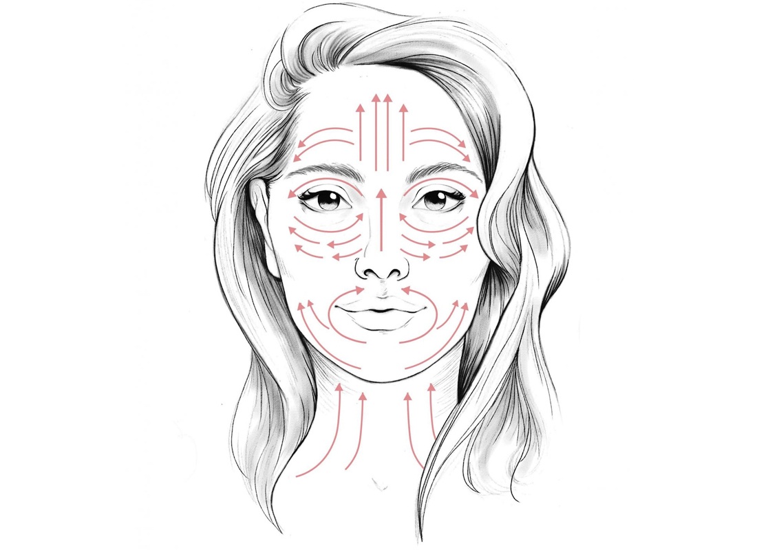 Существуют массажные линии, по которым нужно распределять крем легкими движениями, кончиками пальцев.
