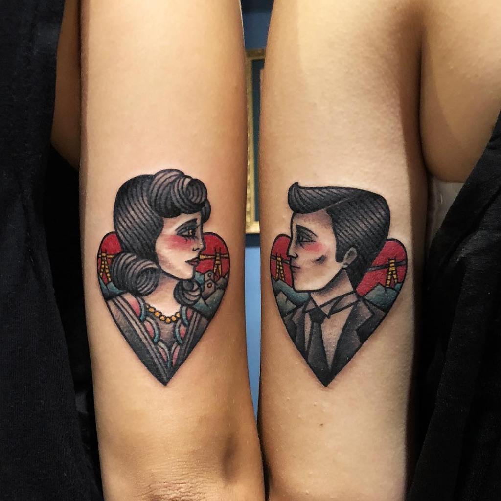 При выборе эскиза важно остановиться на идее и воплощении, которые нравятся обоим. Когда вкусы вроде бы сходятся, а выбранный вариант не устраивает обоих, можно найти такой компромисс: сделать разные татуировки, но в одном стиле