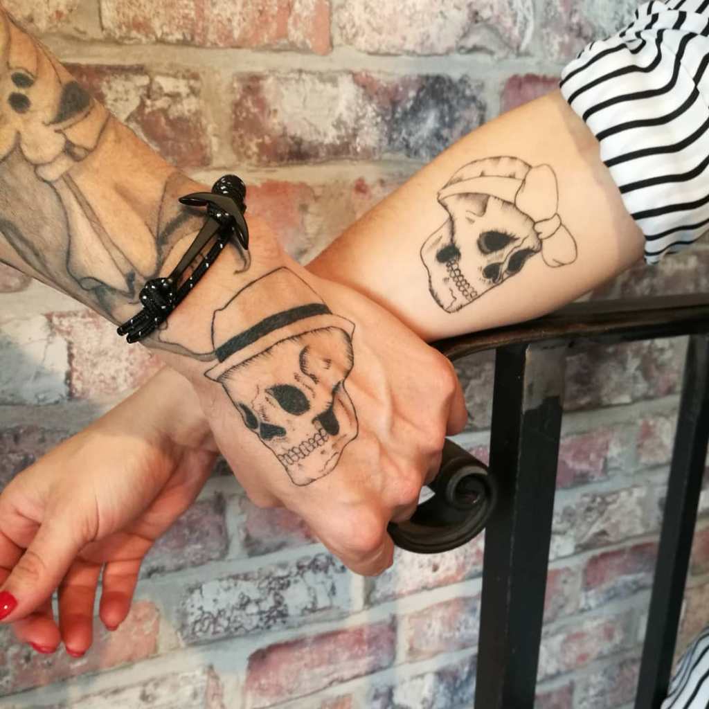 Тату в одном стиле, а также, тату со схожей тематикой подойдут парам, чьи вкусы в целом сходятся, однако, уникальность рисунка имеет значение. Сюжет может быть любым.