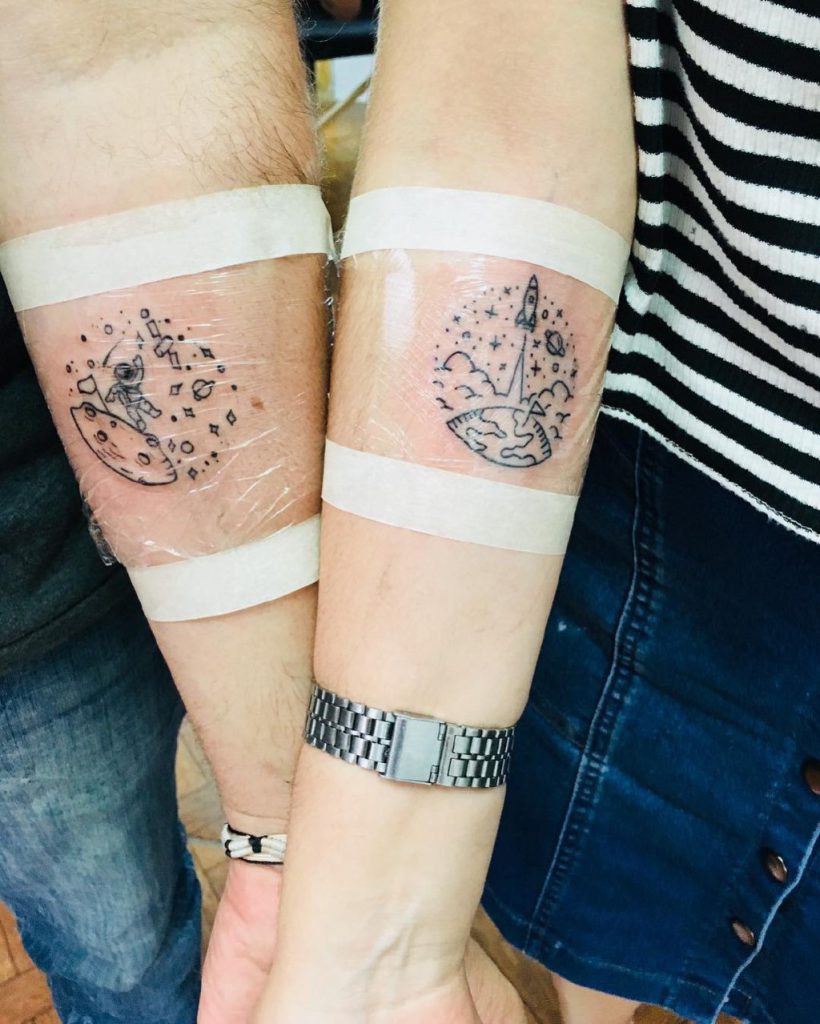 Кстати, некоторые пары делают одинаковые татуировки в разных местах.