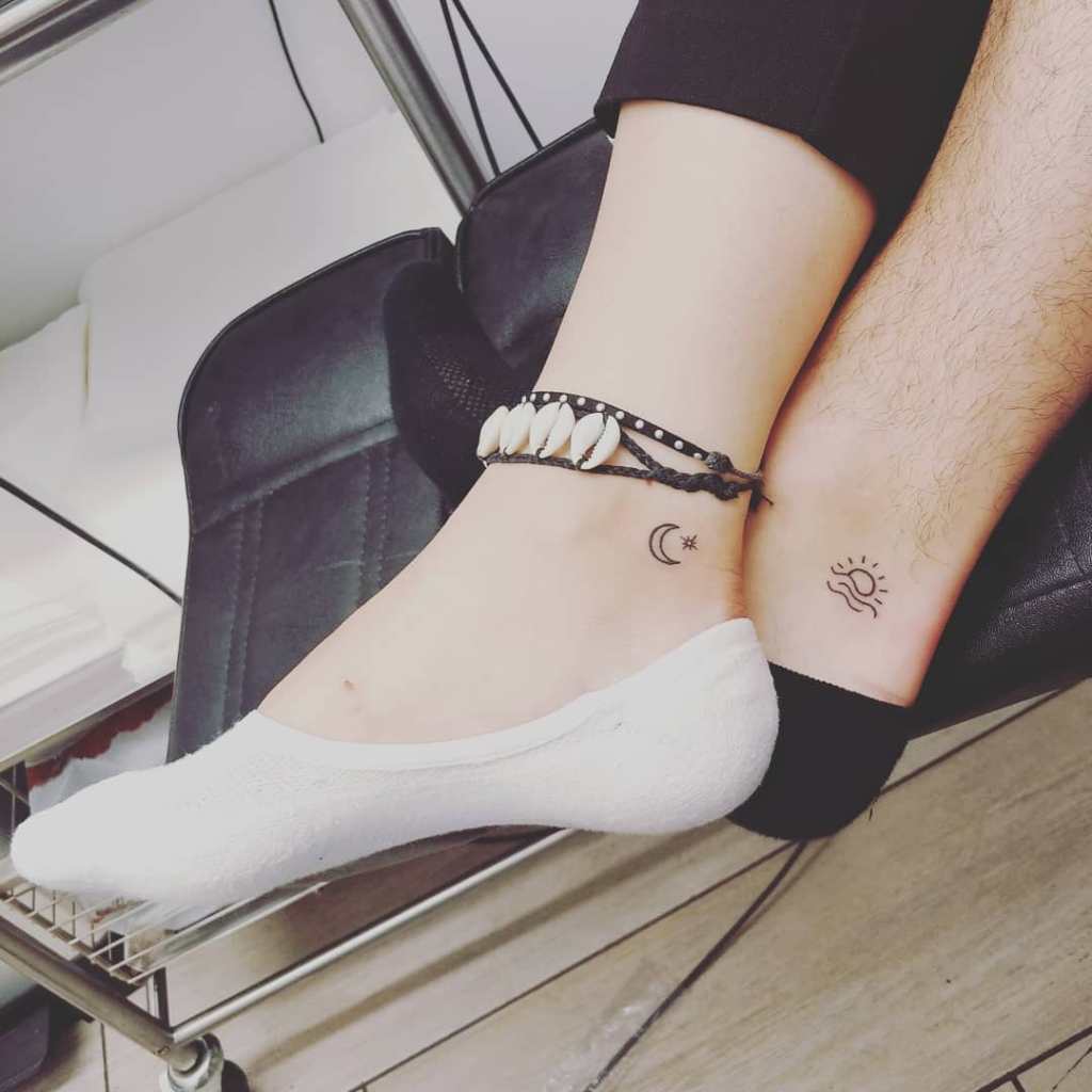 8. Луна и солнце – парные тату, которые можно заказать на годовщину свадьбы влюбленных, классика жанра, олицетворяющая женское и мужское начала.