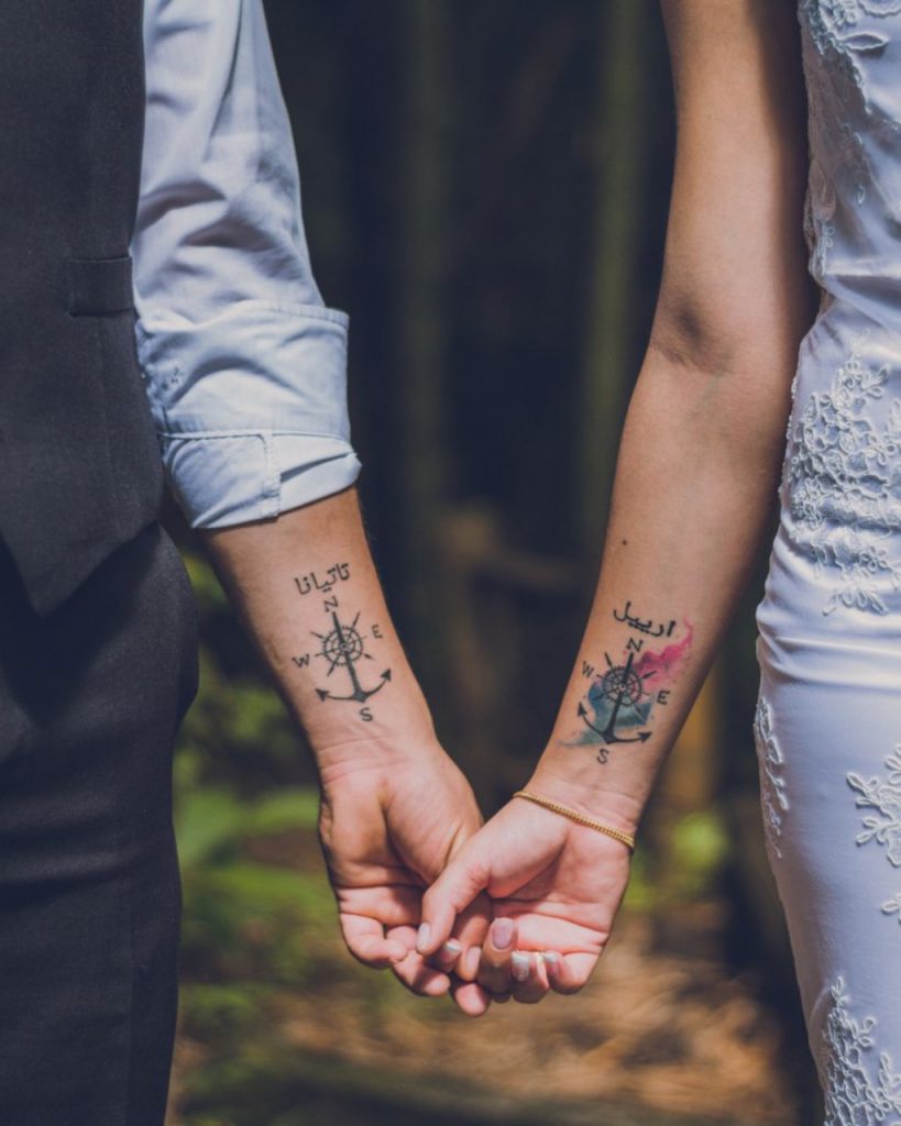 Одной из наиболее прославленных татуировок для супружеских пар является обручальное кольцо, наносимое на безымянные пальцы обоих партнеров. Вместо того, чтобы тратить огромные деньги на кольца с бриллиантами, пары могут нанести тату колец в качестве клятвы друг другу. Такие кольца не будут стоить целое состояние, их нельзя будет потерять или снять: они навсегда станут частью обоих партнеров.