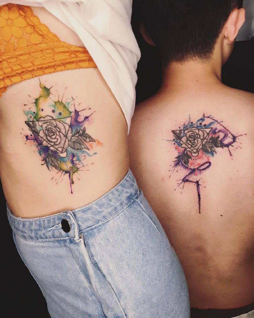 Очень эффектно в этом случае смотрятся парные тату в стиле акварель.