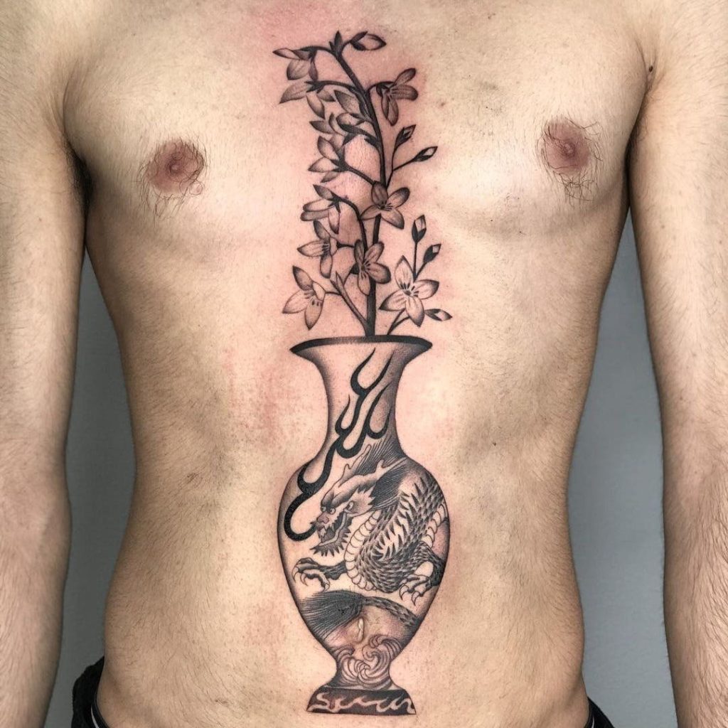 Ближе к концу 2021 года мы увидели намеки на новый тренд тату 2022 года: восточные цветы и вазы. Эти мотивы давно используются в татуировке, но, конечно же, современные татуировщики выводят их на новый уровень качества. Одно из наших любимых произведений прошлого года — Cheon ; Используя грудь и длину рук, кожа превратилась в рябь, усеянную цветами. Это вдохновило многих клиентов, а также художников, и это будет продолжаться. Мы также видели вазы, украшенные Кинцуги, «золотыми столярными изделиями», древним японским искусством закрепления сломанной керамики расплавленным золотом.