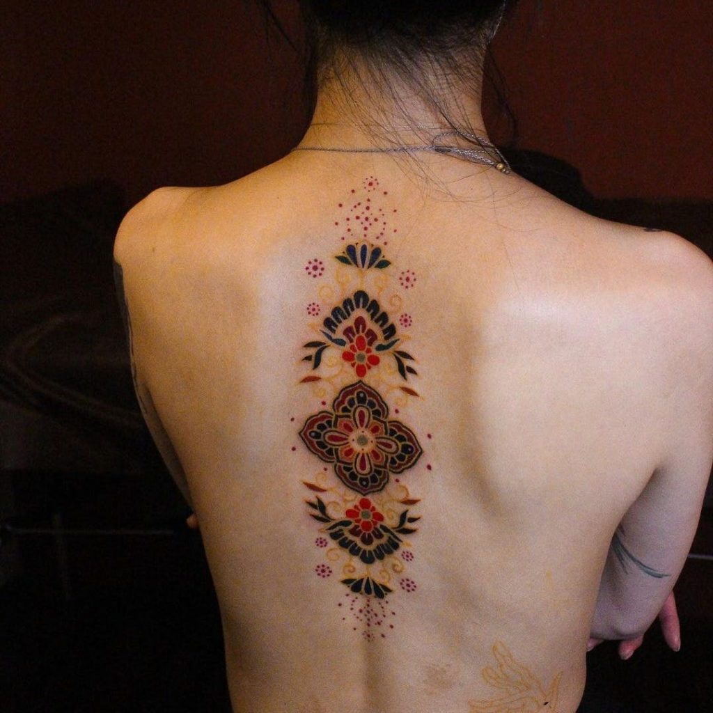 Народные узоры всегда были фаворитом среди традиционных татуировщиков, но мы видели огромный рост именно этих мотивов. Больше не используются как просто декоративная часть более крупной татуировки, многие художники и клиенты используют народные узоры для изучения своей культурной самобытности. Мы видели много великолепных индонезийских батиков или классических корейских узоров, таких как тэгык, и надеемся увидеть еще больше в 2022 году!