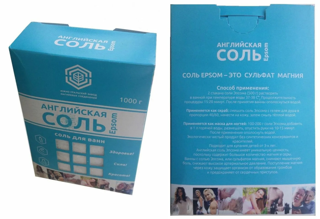 Английская соль является обычным химическим соединение магния и серы. Называют ее по-разному: и магнезия, и горькая соль, и даже соль Эпсома. Продается английская соль в аптеке, стоит недорого и является довольно популярным препаратом как в больнице, так и в быту. Реализуется магнезия в виде белых кристаллов или водного раствора.