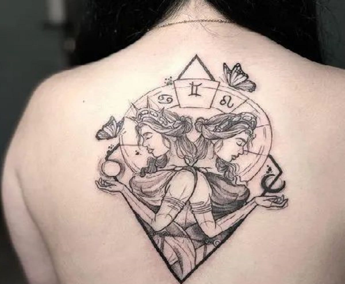 В отличии от предыдущих двух знаков, близнецы всегда особенно переменчивы, общительны и интеллектуальны. Представители знака чаще всего являются противниками рутины и успевают делать множество дел одновременно. Поэтому тату с изображением знака чаще всего не слишком объемные. Это может быть лаконичный символ, изображение людей и другие подобные варианты.