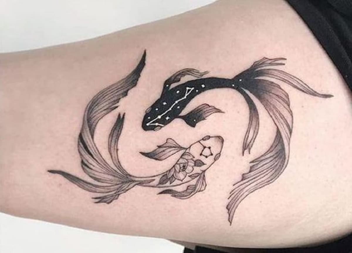 Рыбы – это творческие личности, которые обычно интересуются искусством и наукой. Подходящей тату зодиак, конечно же, будет изображение двух симпатичных рыбок, а также то, что связано с водой – корабль, якорь, флаг, русалка и пр.