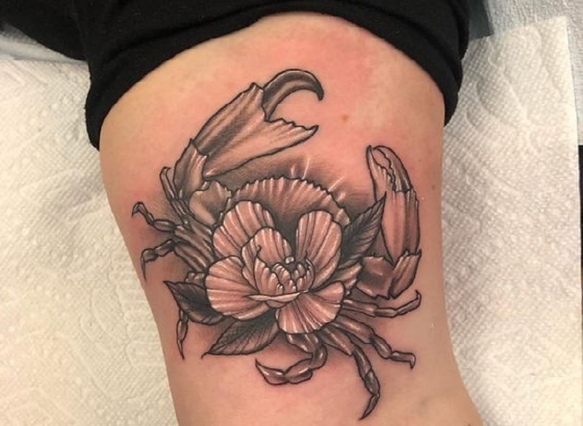 Распространены совершенно разные виды тату. Рак или краб, нарисованный в реалистическом стиле, чаще становится выбором представителей сильного пола. Нередко выбирают они и абстрактное изображение.