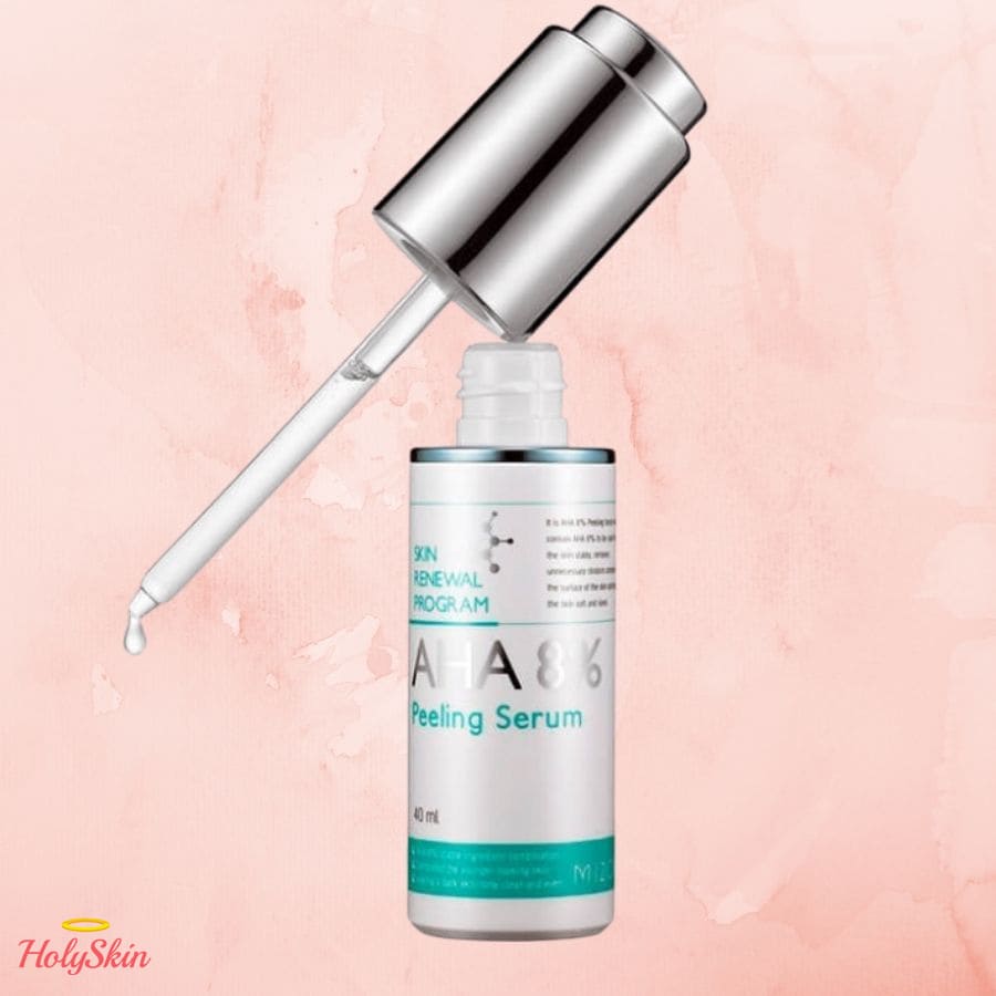 Также в состав Aha 8% Peeling Serum входят гиалуроновая кислота и алантоин, растительные экстракты алоэ, портулака, корня горечавки, полыни, тысячелистника.