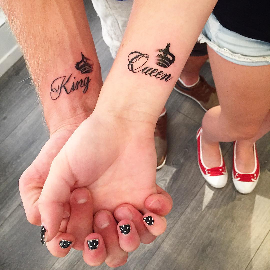 Многие пары делают одинаковые татуировки. Очень часто используется дата свадьбы, обозначения короля и королевы в виде императорских головных уборов или привычных изображений с колоды карт для карточных игр. Большая часть парных тату выражает чувства влюбленных. Очень актуальны эскизы в виде штрих-кодов, знаков бесконечности, линии кардиограмм. Большинство мастеров тату рекомендуют выбирать в качестве парных нательных рисунков общепринятые изображения. Жизнь может сыграть с вами злую шутку, и определенные обстоятельства вынудят вас расстаться. В таком случае соединяющиеся воедино татуировки будут абсолютно неуместными. Не стоит наносить имя партнера, которое в дальнейшем будет напоминать об отношениях. А вдруг воспоминания станут неприятными?
