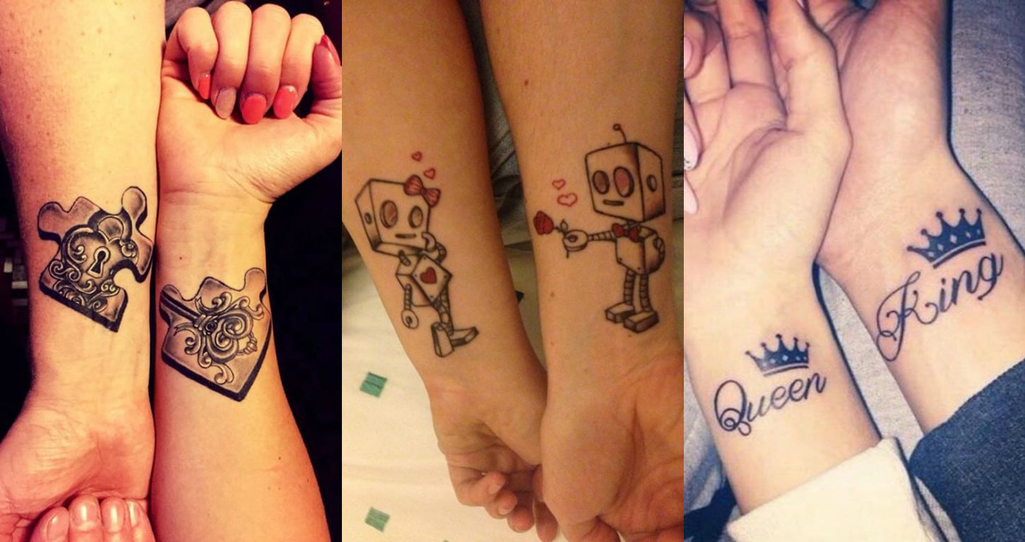 Распространены совместные татуировки для пар на запястье. Большинство из них включают в себя браслет, половину надписи или одинаковый дизайн.