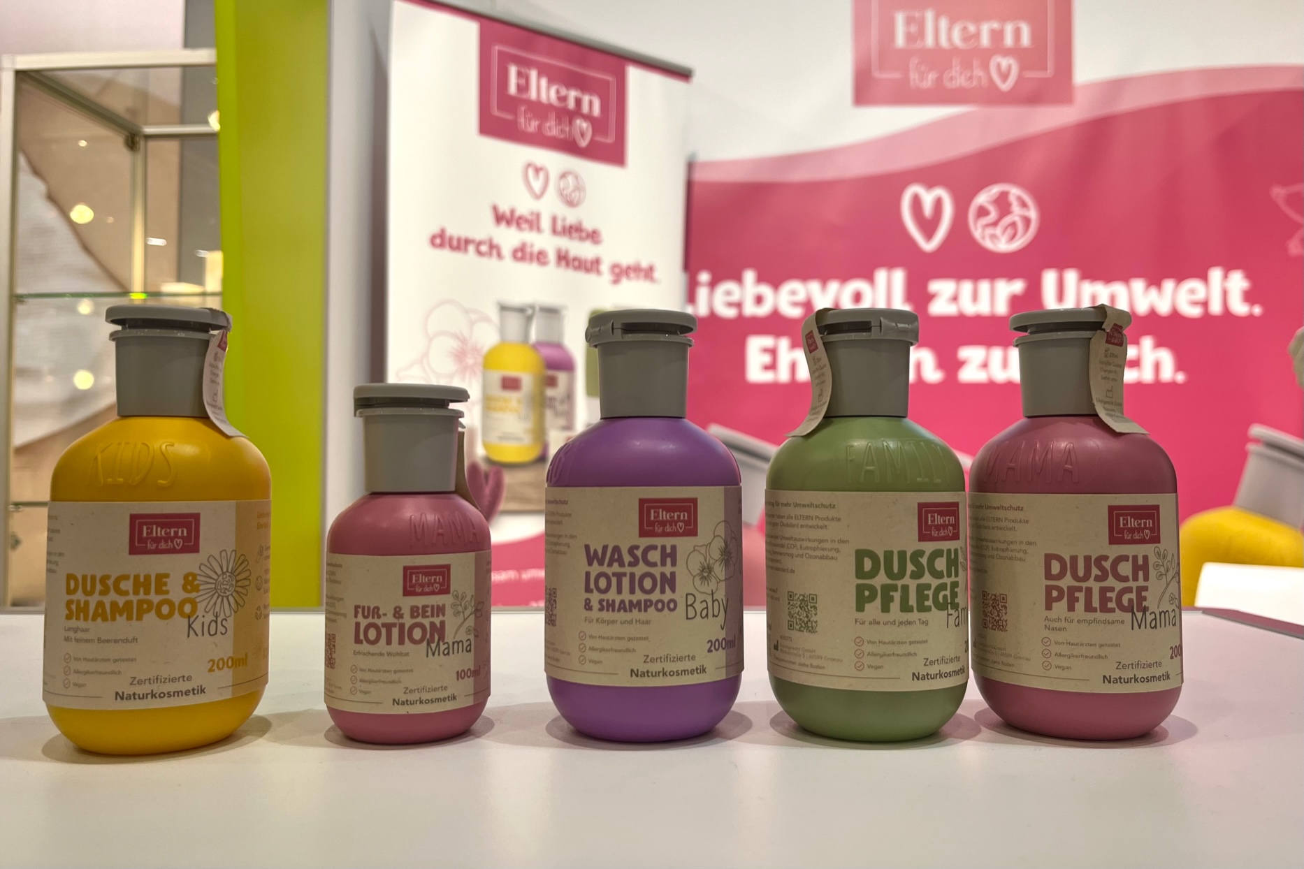 Eltern – совсем свежий стартап-коллаборация с популярным немецким журналом о родительстве и детстве. Приятные банки, которые удобно держать в руках, на 75% из переработанного пластика, внутри – тонкая пластиковая мембрана, чтобы не разрешить продукту контактировать с ресайклинг-материалом. Все подлежит переработке. Классная деталь – под бумажкой из сахарного тростника (печать растительными чернилами) на банке выдавлено название, чтобы в ванной, когда бумажка растворится, не перепутать.