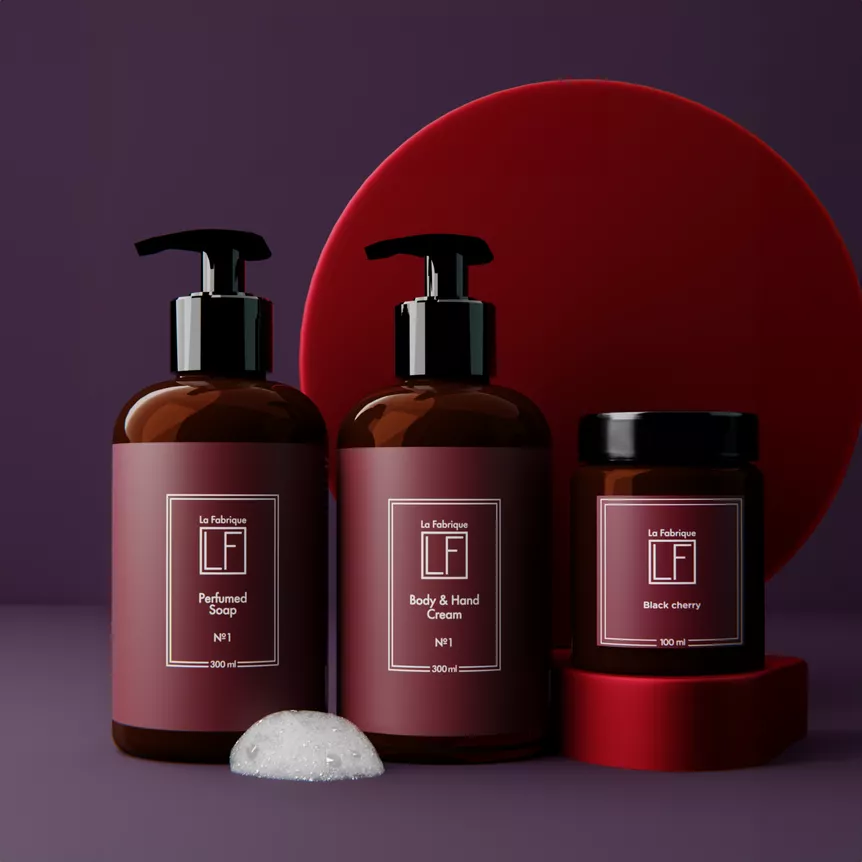 Многие любят сравнивать ароматы средств в пузатых темных флаконах, которые есть сейчас во всех приличных ресторанах. Подобным образом выглядит подарочный набор для домашнего использования La Fabrique из серии «Табак-вишня». В парфюмированной композиции, вдохновленной культовыми ароматами Tom Ford Cherry Smoke и Tom Ford Lost Cherry, сочетаются терпкость табачного листа и яркая вишневая кислинка. Сам набор включает жидкое мыло, крем для рук и тела и ароматическую свечу. Жидкое мыло обогащено полезными экстрактами, омолаживающими, успокаивающими и сохраняющими влагу в коже. Формула крема для рук и тела содержит смягчающие и восстанавливающие масла ши, сладкого миндаля и жожоба. А свеча “Табак-вишня” из соевого воска – это просто 20 часов, проведенных в неге и на релаксе.