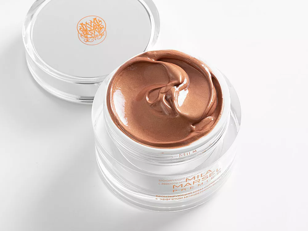 Уже в начале лета хочется быть загорелой, причем раньше всех! О вреде соляриев говорить не имеет смысла, а вот автозагара многие побаиваются: расплывается пятнами, пачкает одежду, ненатурально выглядит… Новый бронизирующий крем-сорбет для тела с эффектом мгновенного высыхания от MilaMarsel Premier – полная противоположность всему этому: он не только равномерно распределяется по поверхности и моментально впитывается, но и придает элегантный, словно бы сияющий оттенок коже, при этом не пачкая ни одежду, ни других людей . В роскошном средстве, кроме того, содержатся сверхчистый антиоксидант биофуллерен, витаминный коктейль (А, Е, F), масло ши, серебряная вода и уникальный комплекс с гиалуроновой кислотой. Поэтому кожа после использования крема-сорбета выглядит не только загорелой, но и невероятно ухоженной.