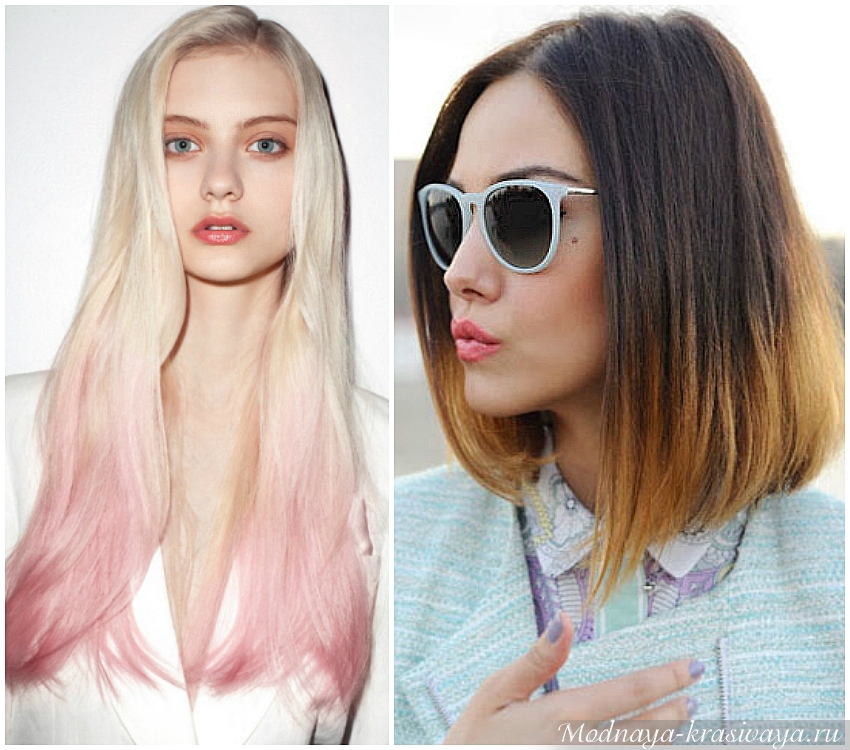 Длина волос тоже может оказаться важным фактором в выборе варианта растяжки к светлым концам волос. Короткие волосы – на них несколько сложнее сделать плавный переход, более удачным будет выбор контрастного окрашивания.