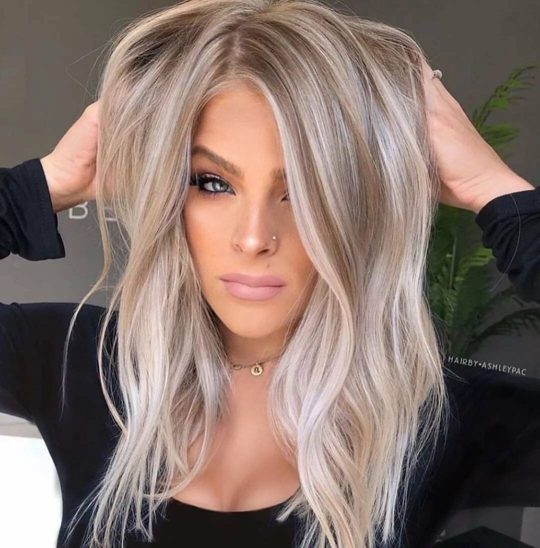 Без малейшего признака желтизны , с небольшим уклоном в пепельный тон — этот универсальный цвет идет всем блондинкам.