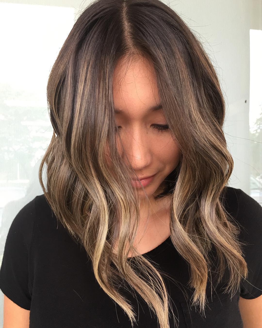 На средних волосах открывается возможность поиграть с уровнями, делая блики на разной высоте. А эффект удлинения локонов ещё больше раскрывает все преимущества окрашивания.