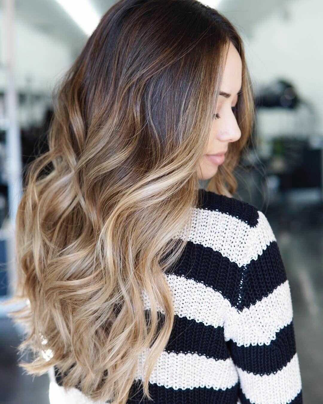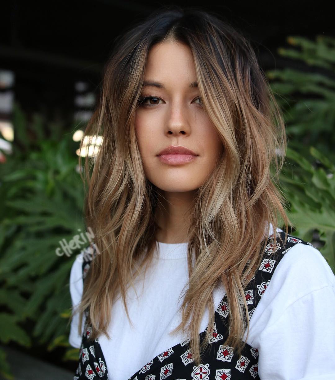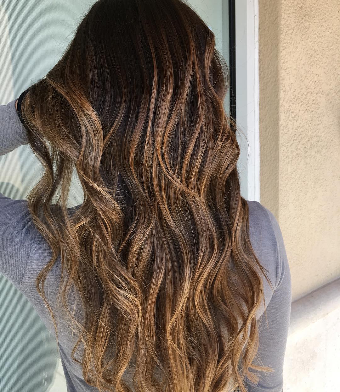 Обладательницы длинной шевелюры в натуральных оттенках часто страдают от желания внести перемены в образ, но при этом не хотят портить или состригать волосы, которые так долго отращивали. Балаяж — это отличный способ разбавить наскучивший цвет и подчеркнуть роскошную длину без особого вреда для её качества. Лёгкому осветлению подвергается лишь часть волосков, поэтому они не будут иссушены или повреждены составами. Но разница до и после всё равно будет заметна.