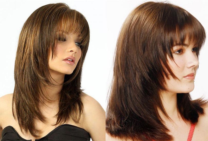 Стрижка лесенка на длинные волосы с челкой становится особенной привлекательной, как будто завершенной. Если позволяет внешность, можно поиграть с различными вариантами челок и выбрать подходящий. Кроме того, челка поможет изменить внешний облик, не меняя при этом всей прически.