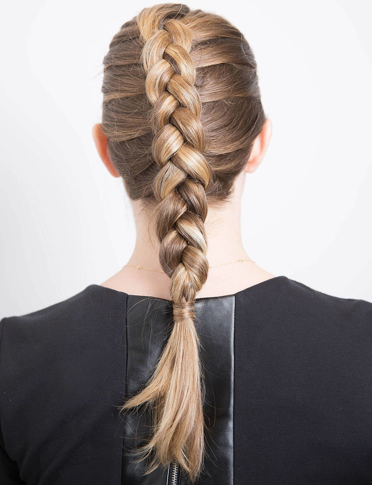 - Коса плетется до конца длины, кончик фиксируется резинкой.