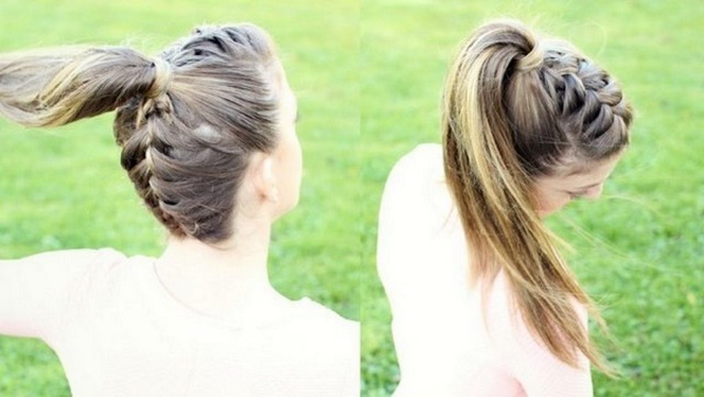 Соединив два выигрышных приёма, получаются десятки причесок. Главный в таком союзе – хвост, а коса является дополнительным декоративным элементом.