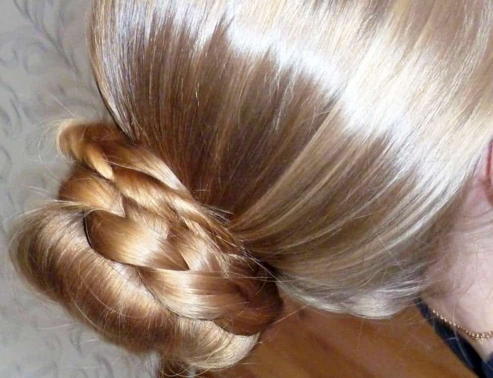 - Статным дамам. Избежать эффекта «прилизанных» волос поможет использование в структуре пучка объёмных кос, которые не дадут эффекта громоздкости.