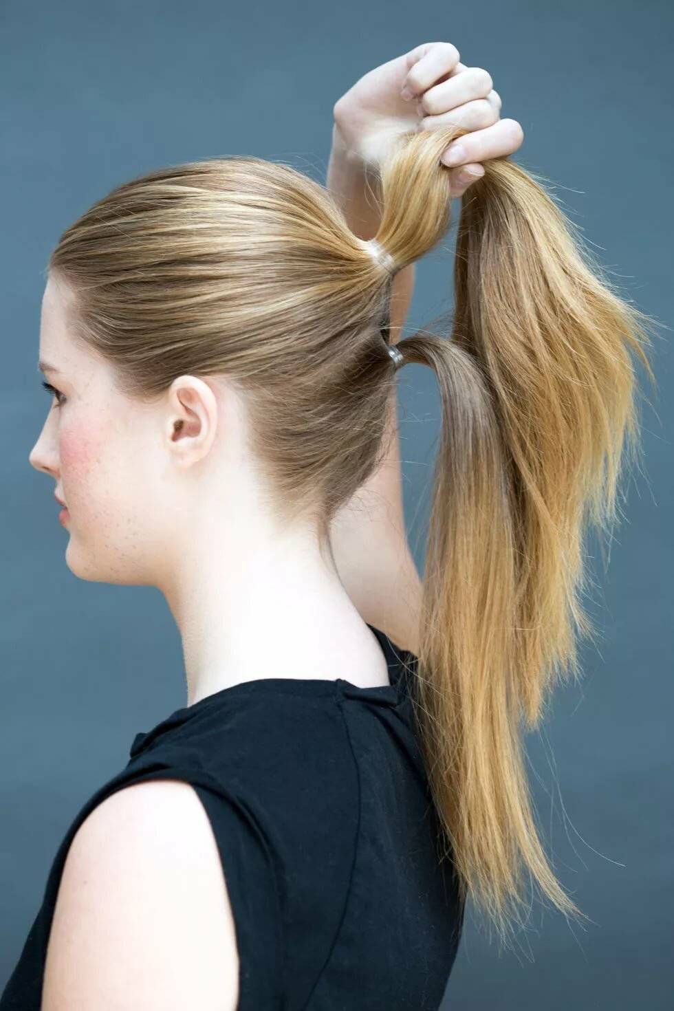 - соберите волосы в обычный хвост, закрепите его плотной резинкой;