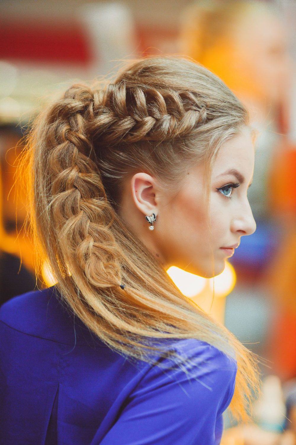 Поистине королевские праздничные образы могут включать две косы – но не простые, а с эффектным начесом. Подобная прическа требует много времени и терпения и возможна в воплощении только на длинной шевелюре, но результат стараний точно будет заслуживать всех комплиментов на вечеринке!