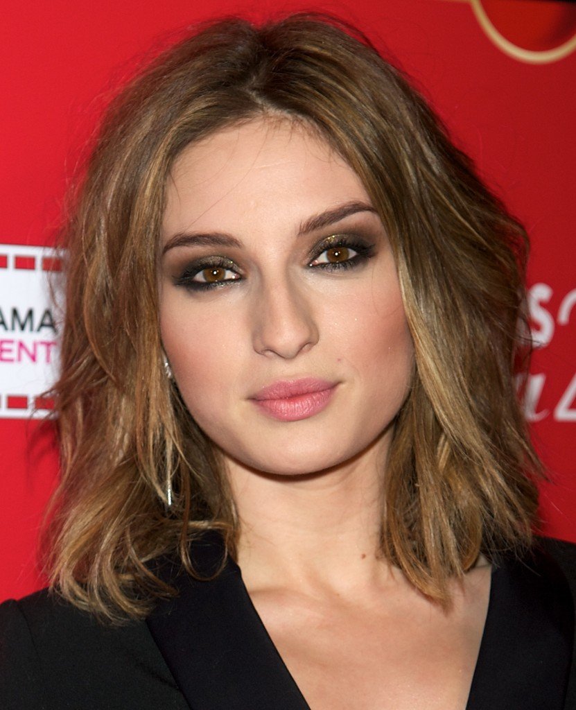 Эту прическу обычно носят с прямыми волосами, в любом случае слегка текстурированный, чтобы слои были оценены по достоинству. С этой же целью, если ваши волосы черные и лишены блеска, советуем вам нарисовать на них мелирование. Это будет выглядеть лучше.